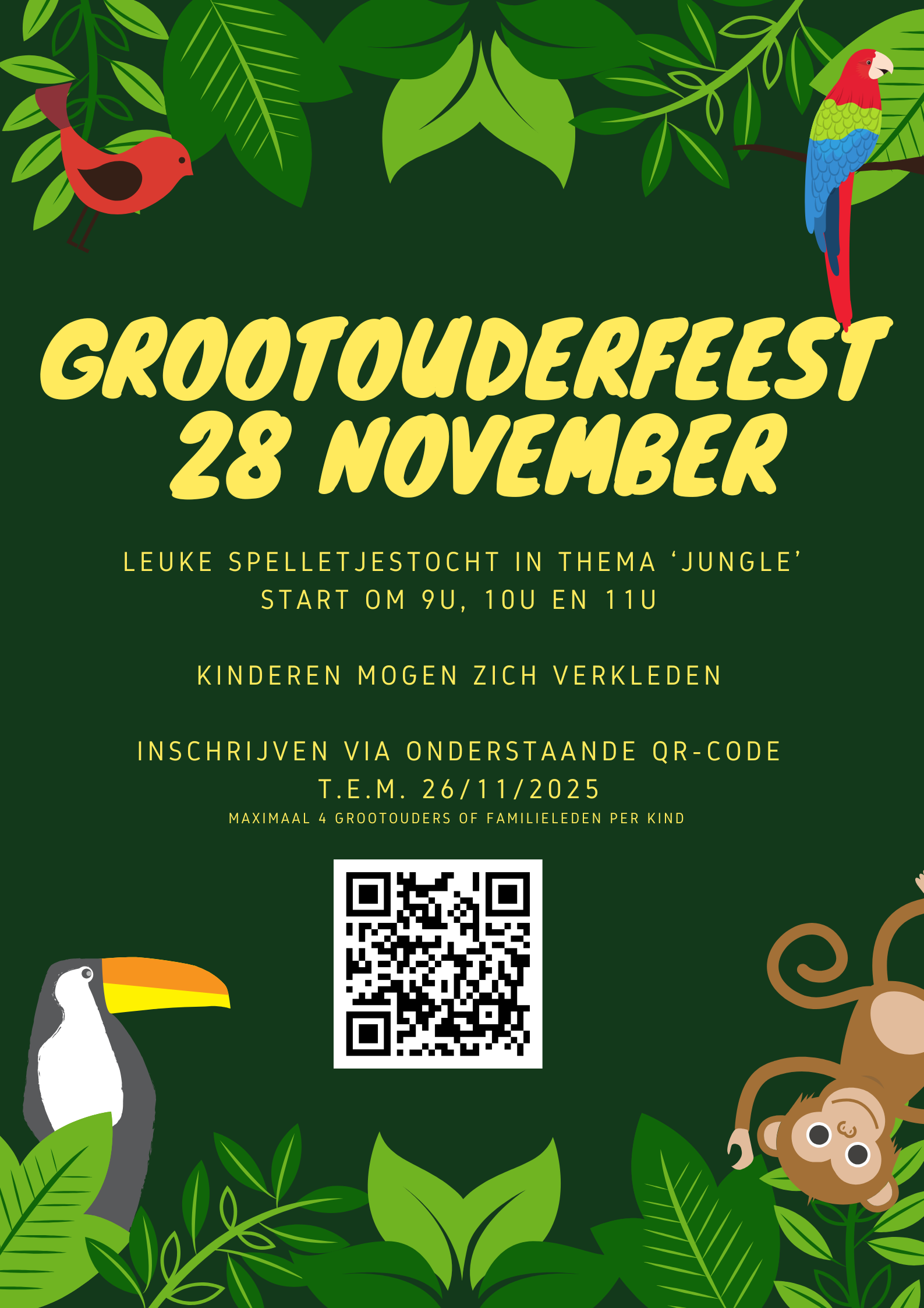 Op deze bijzondere dag organiseren we een leuke spelletjestocht doorheen het kleutergebouw, voor alle grootouders en hun kleinkinderen. Wanneer grootouders niet kunnen komen, mag je kleuter gerust een ander familielid uitnodigen om samen mee te genieten van het feest.