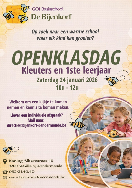Op zoek naar een warme school waar elk kind kan groeien? Dan nodigen we jullie graag uit op onze openklasdag. Kom zeker een kijkje nemen en maak kennis met onze school!